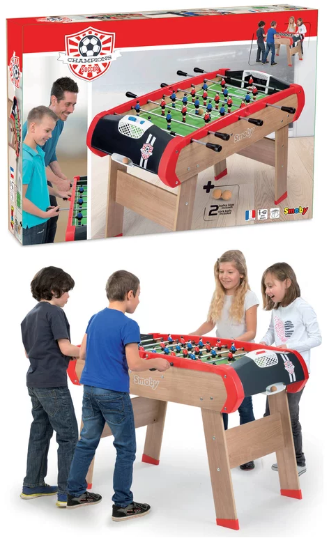 Tout savoir sur le produit Baby Foot - Champions Et 2 Balles Liege Découvrez le Baby foot champions, un baby-foot exceptionnel conçu pour les amateurs de jeux en plein air et de sports. Ce modèle est idéal pour divertir les enfants dès l'âge de 8 ans. Ce baby-foot se distingue par sa structure en bois certifié qui assure une stabilité et une durabilité remarquables. Les poignées ergonomiques offrent un confort optimal pour chaque mouvement, permettant une prise en main facile et un contrôle précis. Le Baby foot champions est également équipé d'un lanceur de balles qui dynamise le début de chaque partie, rendant le jeu encore plus captivant. Les joueurs sont livrés déjà montés, permettant de commencer à jouer sans délai. De plus, deux balles en liège sont incluses pour une expérience de jeu authentique et fluide. Ce baby-foot est bien plus qu'un simple jeu; il encourage les enfants à développer des compétences sociales importantes telles que l'esprit d'équipe et la coordination. En partageant des moments de jeu, les liens familiaux se renforcent, créant des souvenirs mémorables. Que ce soit lors d'une fête ou d'un après-midi en famille, le Baby foot champions est la pièce maîtresse parfaite pour toute occasion. Comment jouer avec le Baby foot champions ? Invitez vos amis à participer à des tournois amicaux. Utilisez le lanceur de balles pour démarrer les parties et mettez en place votre stratégie pour marquer des buts. Qui sera la meilleure équipe ? Choisissez le Baby foot champions pour transformer chaque partie en une aventure passionnante, riche en rires et en divertissement.