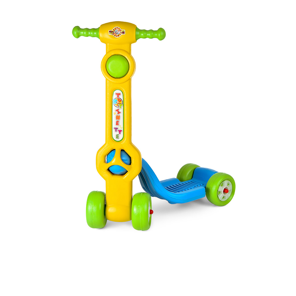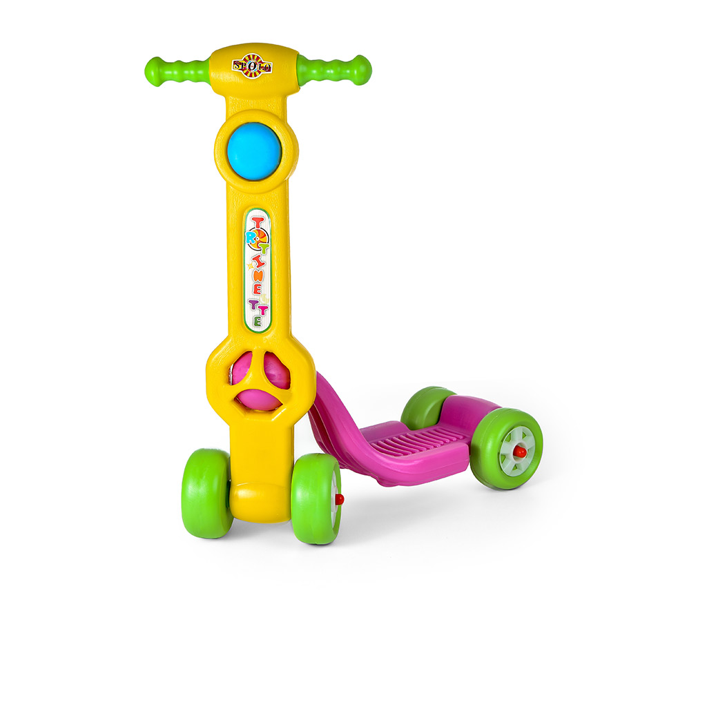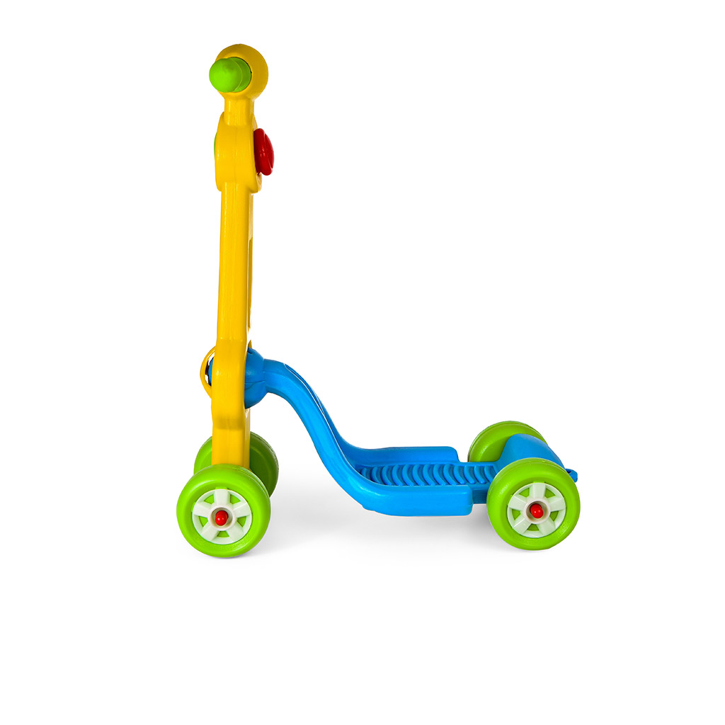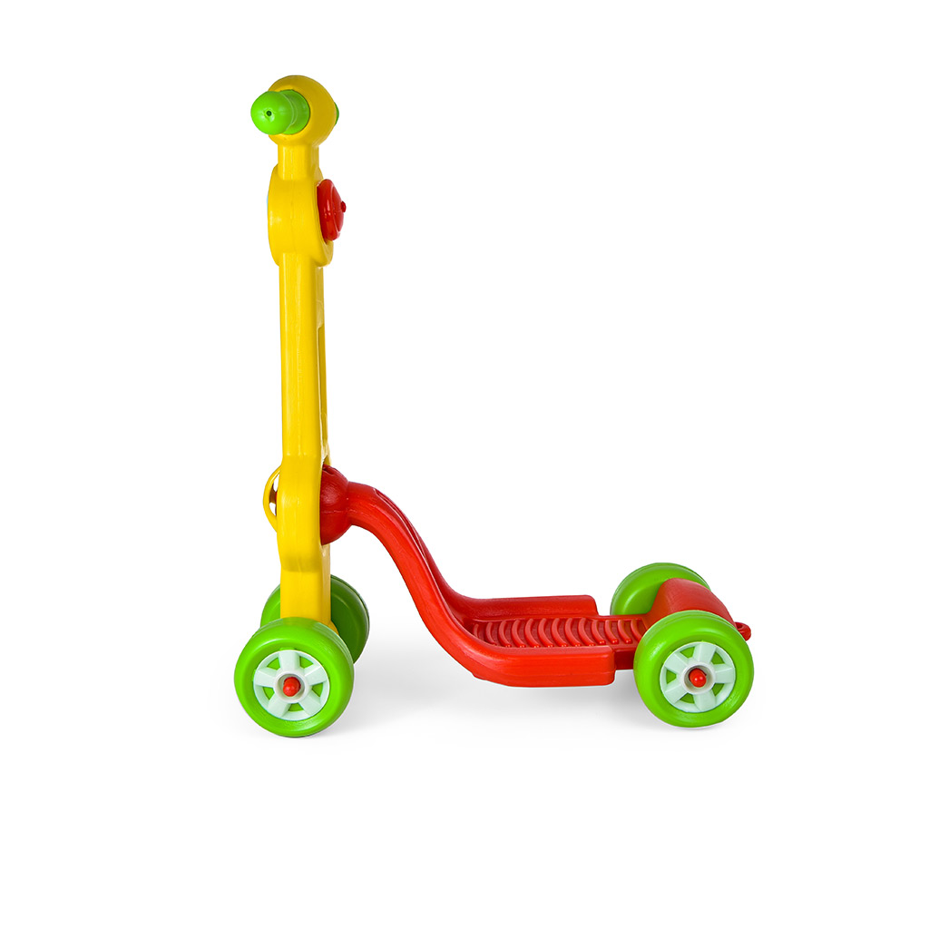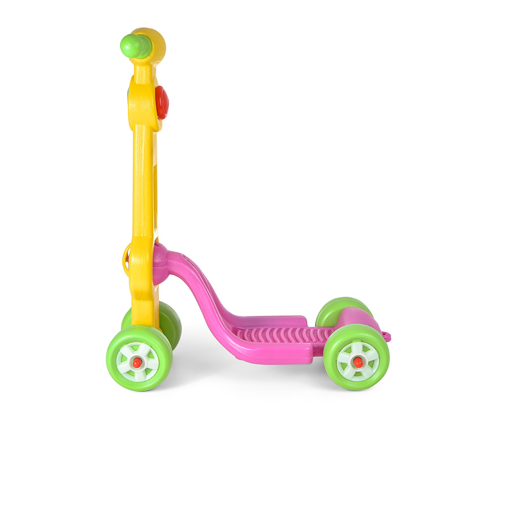 Trottinette facile à conduire avec 4 roues. Dimension: 27*50*68 ( l*L*h) CM Colisage : 10 trottinettes Age : 2ans et plus Matière: plastique